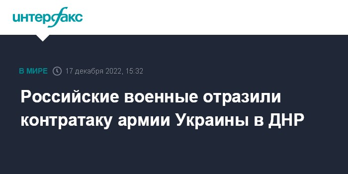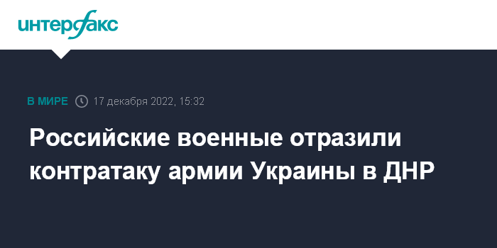 Москва. 17 декабря. INTERFAX.RU - Российские военные заявили о наступлении на донецком направлении и об отражении контратак армии Украины в районах населенных пунктов Бахмутское и Опытное в ДНР.