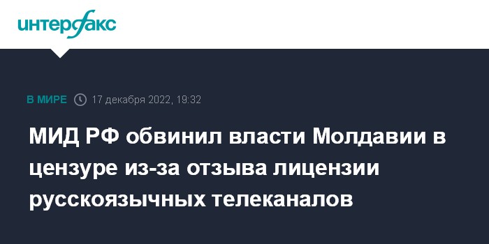 Отмечается, что 16 декабря молдавская Комиссия по чрезвычайным ситуациям приняла решение об отзыве лицензий у шести русскоязычных телеканалов: Orhei TV, NV6, NTV Moldova, Accent TV, RTR Moldova и Primul in Moldova.
