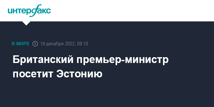 Москва. 19 декабря. INTERFAX.RU - Премьер-министр Великобритании Риши Сунак 19 декабря посетит Эстонию с однодневным визитом, сообщила пресс-служба эстонского правительства.