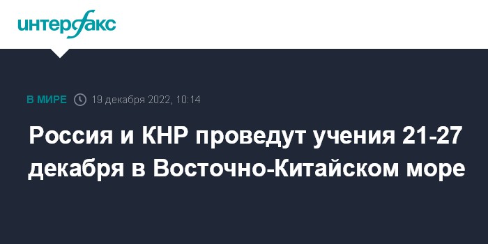 Россия и КНР проведут учения 21-27 декабря в Восточно-Китайском море