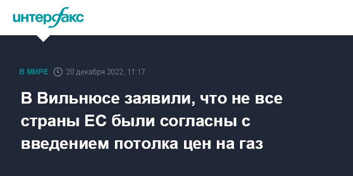 В Вильнюсе заявили, что не все страны ЕС были согласны с введением потолка цен на газ