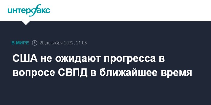 США не ожидают прогресса в вопросе СВПД в ближайшее время