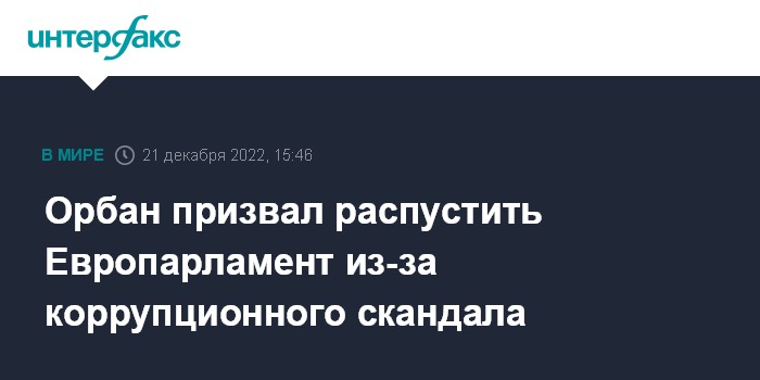 Москва. 21 декабря. INTERFAX.RU - Премьер Венгрии Виктор Орбан заявил в среду, что считает нужным добиваться роспуска Европарламента в связи с разразившимся там коррупционным скандалом.