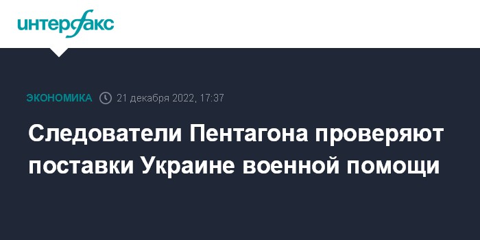 Москва. 21 декабря. INTERFAX.RU - Служба криминальных расследований Минобороны США (DCIS) ведет проверки поставок военной помощи Киеву, поскольку эти грузы могут оказаться на черном рынке, сообщает в среду Defense news.