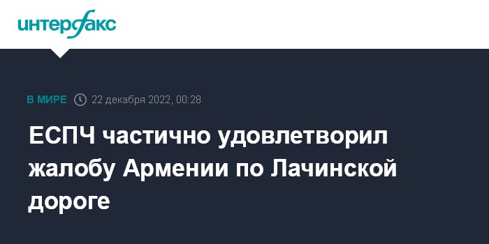 Москва. 22 декабря. INTERFAX.RU - Европейский суд по правам человека (ЕСПЧ) в среду частично удовлетворил ходатайство правительства Армении по Лачинской дороге, отказав Еревану в требовании применить к Баку обеспечительные меры о ее "разблокировке".