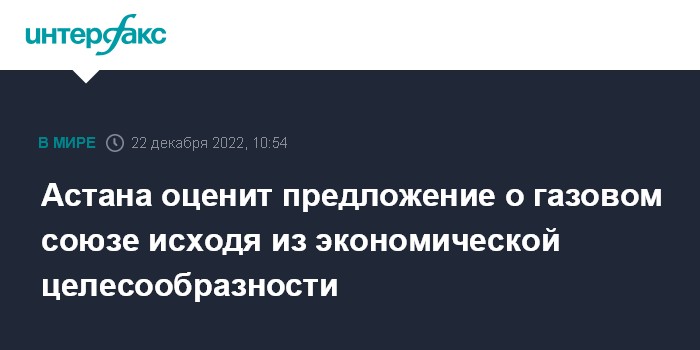 Москва. 22 декабря. INTERFAX.RU - Руководство Казахстана рассматривает предложение о создании газового союза с Россией и Узбекистаном только как коммерческое предложение по интегрированию рынков по поставке газа, сказал на пресс-конференции замглавы МИД республики Алмас Айдаров.
