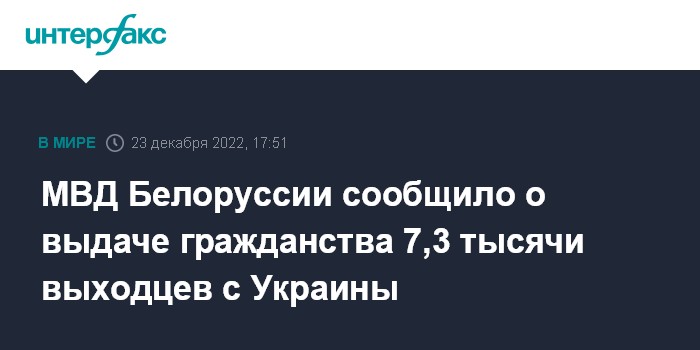 МВД Белоруссии сообщило о выдаче гражданства 7,3 тысячи выходцев с Украины