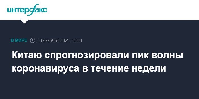 Москва. 23 декабря. INTERFAX.RU - Нынешняя волна коронавируса в КНР, по-видимому, усилится до максимума в течение недели, заявил директор Национального центра инфекционных заболеваний КНР Чжан Вэньхун.