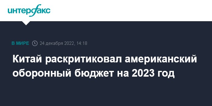"Китай сделал представление Соединенным Штатам после того, как президент США Джо Байден подписал закон о бюджетных ассигнованиях на национальную оборону на 2023 финансовый год", - говорится в заявлении МИД КНР, которое цитирует канал.