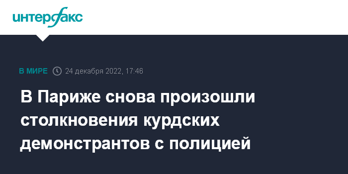 Москва. 24 декабря. INTERFAX.RU - Сотрудники французской полиции в субботу вступили в столкновения с курдскими демонстрантами в центре Парижа, сообщает газета Le Figaro.