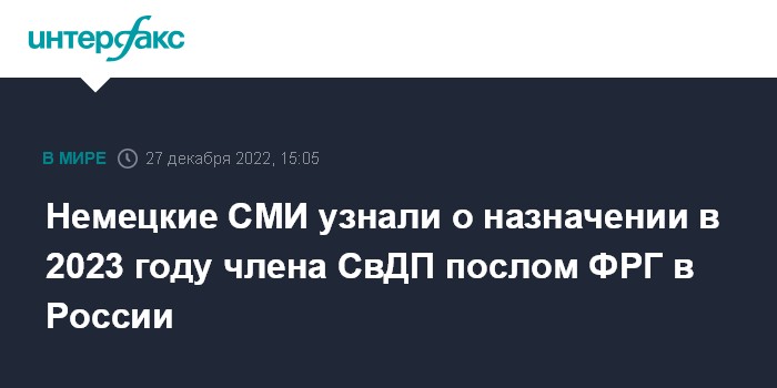 Немецкие СМИ узнали о назначении в 2023 году члена СвДП послом ФРГ в России