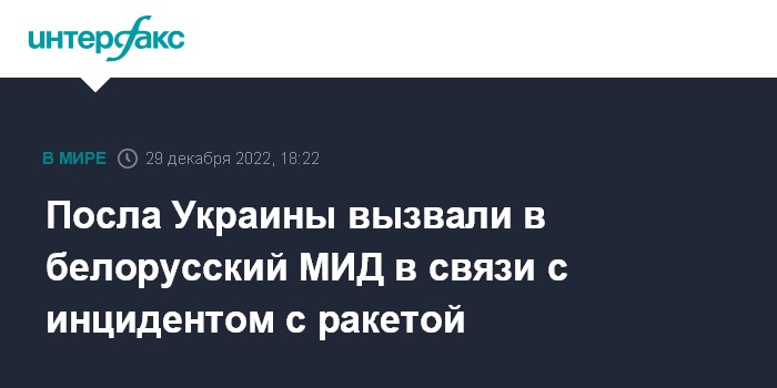"Мы потребовали, чтобы украинская сторона провела тщательное расследование всех обстоятельств пуска указанной ракеты, привлекла к ответственности виновных и приняла исчерпывающие меры, чтобы не допустить повторения в будущем подобных инцидентов", - сказал пресс-секретарь МИД Белоруссии.