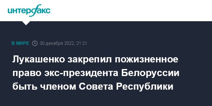 Лукашенко закрепил пожизненное право экс-президента Белоруссии быть членом Совета Республики