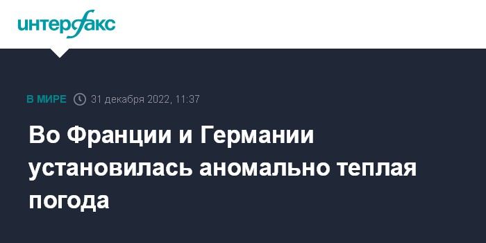 Москва. 31 декабря. INTERFAX.RU - Несколько европейских стран перед Новым годом столкнулись с необычайным для этого времени потеплением.