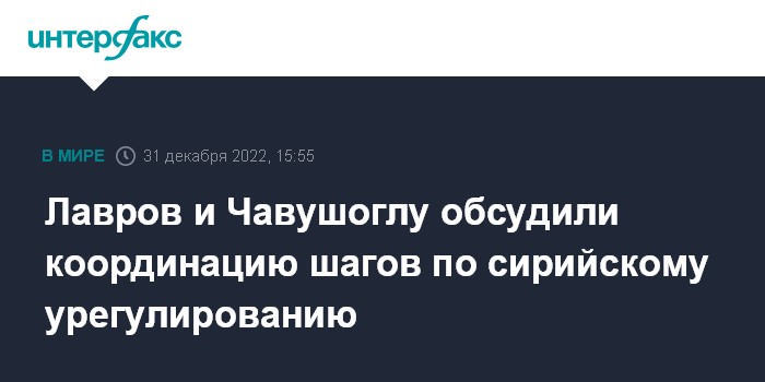 "Министры обменялись новогодними поздравлениями и обсудили планы сотрудничества внешнеполитических ведомств на 2023 год, включая дальнейшую координацию шагов по содействию сирийскому урегулированию", - говорится в сообщении.