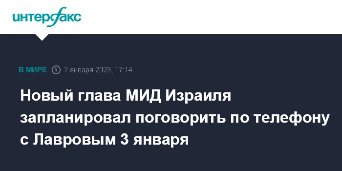 Новый глава МИД Израиля запланировал поговорить по телефону с Лавровым 3 января