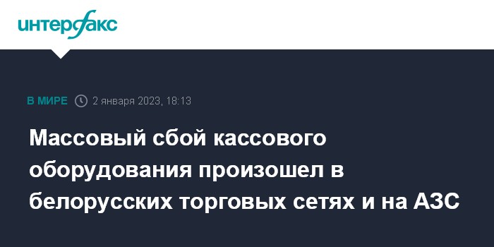 Москва. 2 января. INTERFAX.RU - Белорусские торговые сети и АЗС в понедельник сообщают о невозможности работы из-за массового сбоя кассового оборудования.