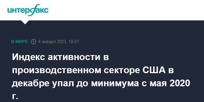 Индекс активности в производственном секторе США в декабре упал до минимума с мая 2020 г.
