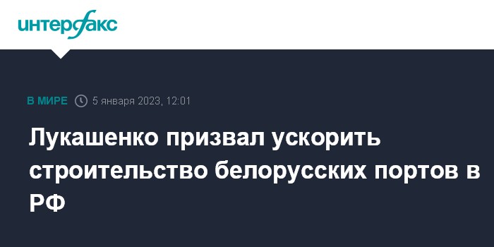 Москва. 5 января. INTERFAX.RU - Президент Белоруссии Александр Лукашенко призвал форсировать строительство портов Белоруссии в России.