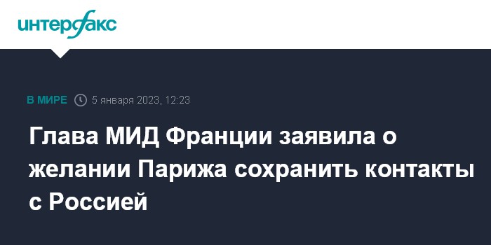 "Мы поддерживаем контакты на всех уровнях и желаем сохранять контакты с Россией (...). Мне доводилось разговаривать с моим коллегой Сергеем Лавровым, пересекаться с ним на международных конференциях", - сказала она в четверг в эфире телеканала LCI.