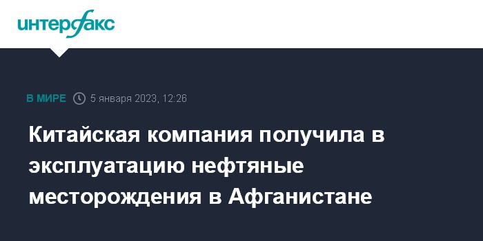 Москва. 5 января. INTERFAX.RU - Министр горнорудной промышленности и нефти контролирующего Афганистан движения "Талибан" (запрещенная в России террористическая организация) Шахабуддин Делавар и представитель китайской компании подписали договор на эксплуатацию нефтяных месторождений на севере страны.