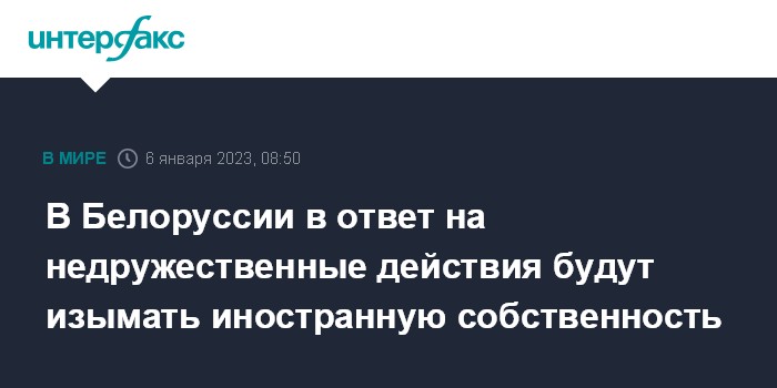 Москва. 6 января. INTERFAX.RU - Белорусские власти в ответ на недружественные действия будут изымать иностранную собственность. Соответствующий закон за подписью главы республики Александра Лукашенко опубликован в пятницу на Национальном правовом интернет-портале.