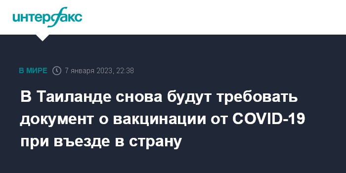 В октябре власти Таиланда отменили требование к приезжающим иметь при себе документ, подтверждающий вакцинацию. Однако, как отмечают СМИ, на фоне роста числа случаев коронавируса в Китае эту меру решили вернуть. При этом, в отличие от ряда других стран, которые ввели ограничения на въезд для прибывающих только из КНР, власти Таиланда применили их для всех стран.