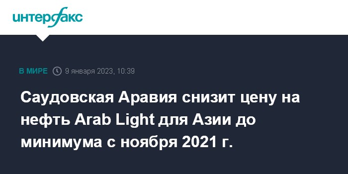 Саудовская Аравия снизит цену на нефть Arab Light для Азии до минимума с ноября 2021 г.