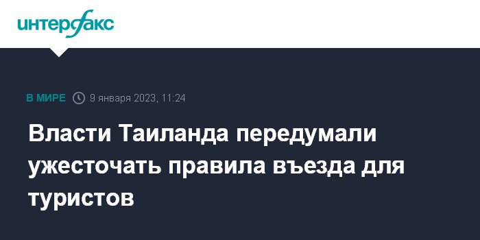 В субботу управление гражданской авиации Таиланда заявило, что с понедельника, 9 января, все прибывающие иностранцы должны будут доказать, что они вакцинированы, или перенесли коронавирус в течение последних шести месяцев. Это заявление было сделано накануне открытия границ Китаем, который с 8 января отменил ПЦР-тесты и карантин для въезжающих.