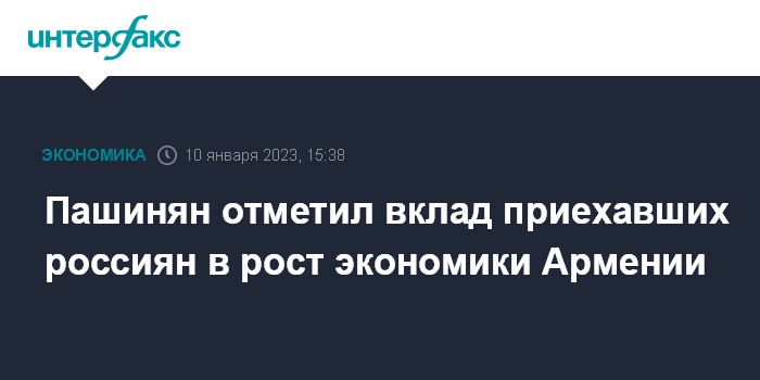 Пашинян отметил вклад приехавших россиян в рост экономики Армении