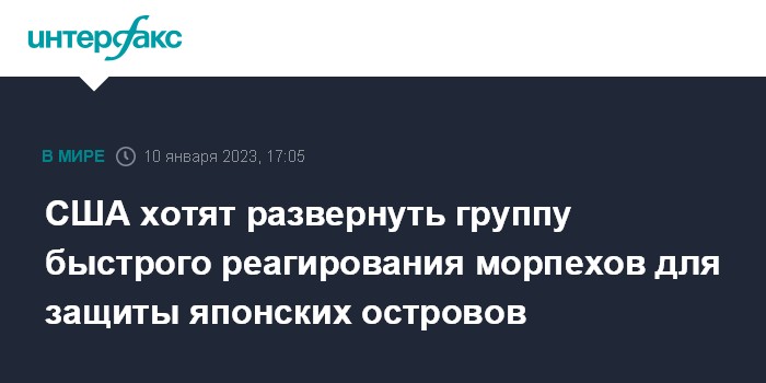 Москва. 10 января. INTERFAX.RU - Командование США собирается разместить в японской префектуре Окинава группу быстрого реагирования Корпуса морской пехоты для обороны отдаленных островов на юго-западе Японского архипелага, сообщает во вторник Kyodo со ссылкой на дипломатические источники двух стран.