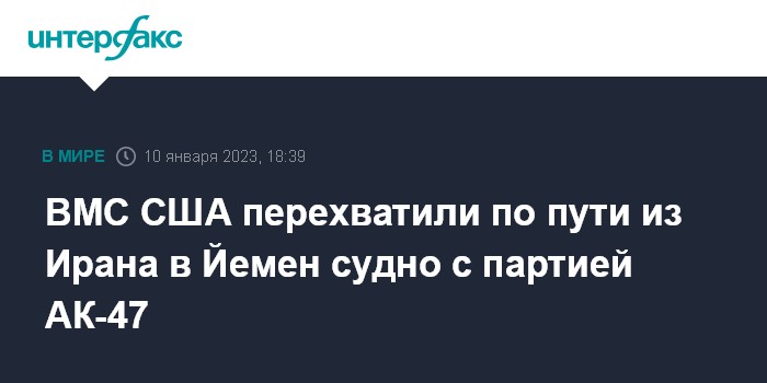 ВМС США перехватили по пути из Ирана в Йемен судно с партией АК-47