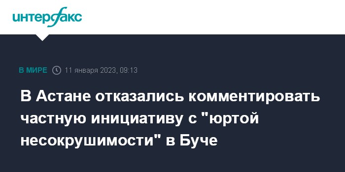 Москва. 11 января. INTERFAX.RU - Казахстанские дипломаты не участвовали в акции по установке "юрты несокрушимости" в городе Буча, сообщил журналистам представитель МИД Казахстана Айбек Смадияров.