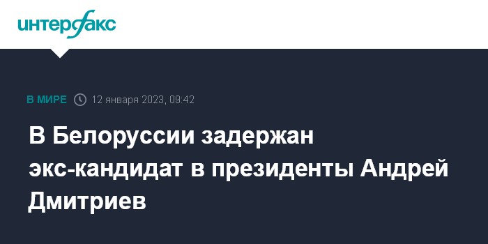 Москва. 12 января. INTERFAX.RU - В Белоруссии задержан экс-кандидат в президенты страны на выборах 2020 года Андрей Дмитриев, сообщается в четверг в соцсетях оппозиционного политика.