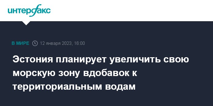Москва. 12 января. INTERFAX.RU - Глава МИД Эстонии Урмас Рейнсалу сообщил о подготовке правовой базы для увеличения морской зоны республики в дополнение к территориальным водам страны.