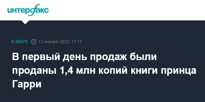 В первый день продаж были проданы 1,4 млн копий книги принца Гарри