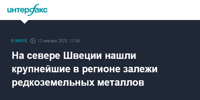 Москва. 12 января. INTERFAX.RU - Горнодобывающая компания LKAB сообщила об открытии в арктической части Швеции крупнейших месторождений редкоземельных металлов, используемых в новейших технологиях, сообщает в четверг Associated Press (AP).
