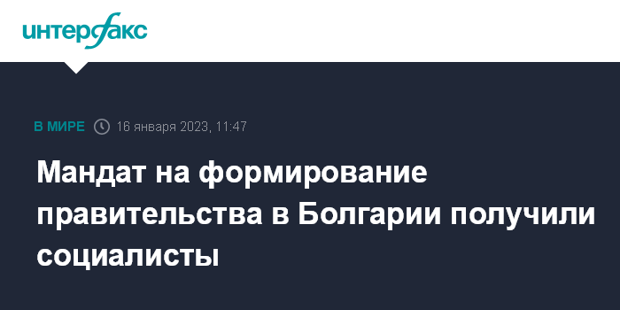 Москва. 16 января. INTERFAX.RU - Президент Болгарии Румен Радев в понедельник вручил мандат на формирование правительства представителям Болгарской социалистической партии (БСП), сообщает Болгарское национальное радио.