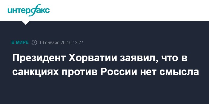 Москва. 16 января. INTERFAX.RU - Президент Хорватии Зоран Миланович назвал бессмысленными санкции в отношении России.