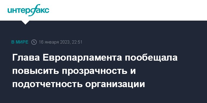 Москва. 16 января. INTERFAX.RU - Председатель Европарламента (ЕП) Роберта Метсола, открывая в понедельник в Страсбурге пленарную сессию, заявила, что события, связанные с расследованием коррупции в ЕП, указывают на необходимость реформ и повышения прозрачности.