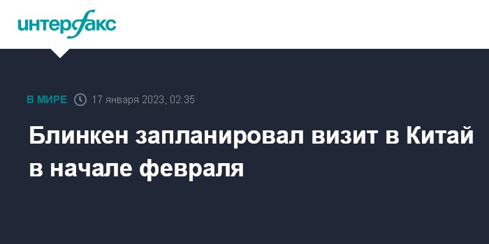 "Госсекретарь Блинкен встретится в Пекине со своим коллегой, министром иностранных дел Китая Цинь Ганом 5-6 февраля", - сообщили американские дипломаты, осведомленные о планах главы Госдепартамента.