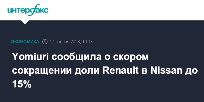 Yomiuri сообщила о скором сокращении доли Renault в Nissan до 15%