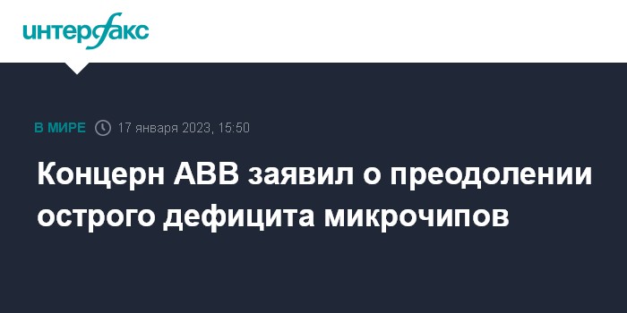 Москва. 17 января. INTERFAX.RU - Глобальный дефицит полупроводниковых компонентов постепенно сходит на нет после нескольких лет серьезных проблем в цепочках поставок, сказал глава шведского-швейцарского инжинирингового концерна ABB Петер Возер.