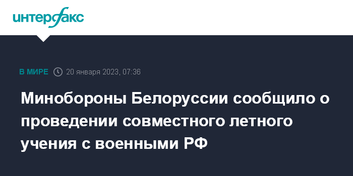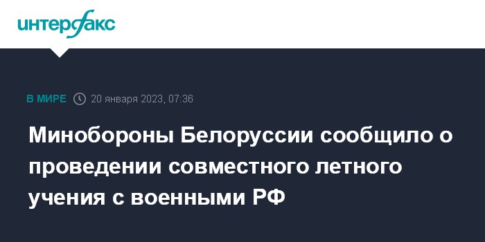 В понедельник, 16 января, стартовало совместное летно-тактическое учение авиационных подразделений вооруженных сил Белоруссии и России, входящих в состав авиационного компонента региональной группировки войск (сил). От российской стороны участие принимает воинское формирование Воздушно-космических сил.