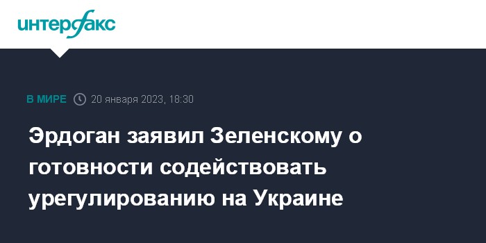 Москва. 20 января. INTERFAX.RU - Президент Турции Реджеп Тайип Эрдоган обсудил по телефону с президентом Украины Владимиром Зеленским перспективы урегулирования украинского конфликта, сообщает Anadolu.