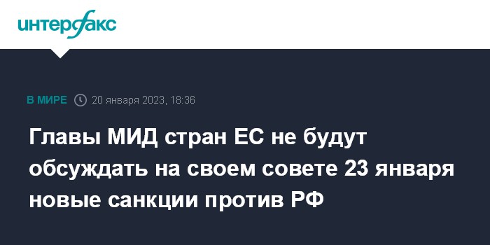 Главы МИД стран ЕС не будут обсуждать на своем совете 23 января новые санкции против РФ