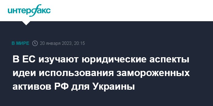 "Что касается замороженных авуаров и того, можно ли их использовать, в данный момент идут юридические обсуждения. Есть много связанных с этим юридических проблем", - сказал в пятницу в Брюсселе источник, комментируя на условии анонимности повестку заседания Совета ЕС по иностранным делам 23 января, одним из главных пунктов которого будет помощь Евросоюза Украине.