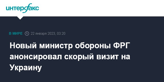 Москва. 22 января. INTERFAX.RU - Министр обороны Германии Борис Писториус сообщил, что в ближайшее время планирует посетить Украину.