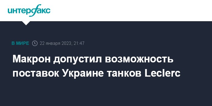Москва. 22 января. INTERFAX.RU - Президент Франции Эммануэль Макрон в воскресенье заявил, что не исключает поставок Киеву основных боевых танков AMX-56 Leclerc, но решение будет принято исходя из ряда условий.