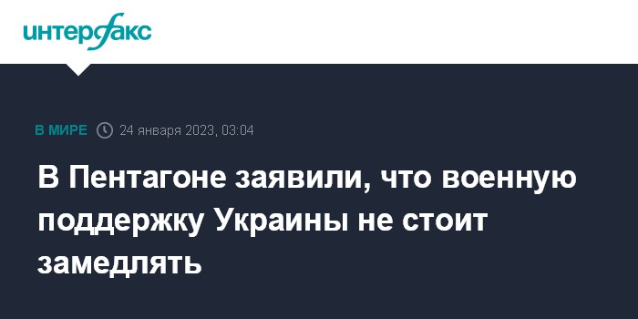 Москва. 24 января. INTERFAX.RU - США считают нынешний момент неподходящим для снижения темпов поддержки Украины, заявил высокопоставленный чиновник Пентагона во время брифинга.
